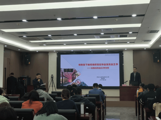 会上,孟延军处长以“新形势下如何做好高校毕业生就业工作”为题,以河北工业职业技术大学为例,从国家、社会、学校、学生个人不同层面指出就业工作的重要性,用数据、案例、典型经验、具体措施介绍了河北工业职业技术大学的就业工作基本情况和就业工作做法,并针对我校就业工作面临的问题与参会人员的疑虑,进行了详细的解答。