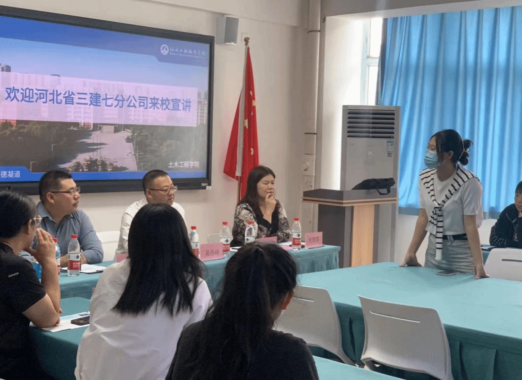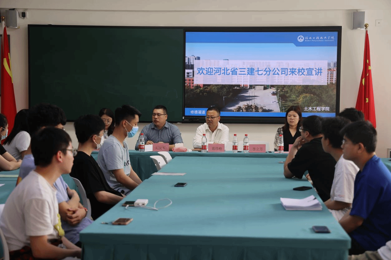 为深入学习贯彻党的二十大精神,落实教育部办公厅关于开展2023届高校毕业生就业“百日冲刺”行动,助力毕业生更高质量更加充分的就业,助力企业人才招聘工作,土木工程学院于2023年5月19日上午9:30,在我校知行楼302举办河北省第三建筑工程有限公司专场招聘会。出席本次招聘会的有河北省第三建筑工程有限公司第七分公司人事总监葛伟峰、技术总监刘汉军、李立芳,学院教学副院长杜慧慧、2023届毕业班年级负责人辛静。学院招就办主任聂伶平主持此次会议。