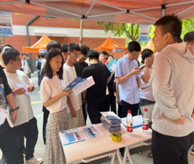 学院领导和辅导员在招聘现场合影