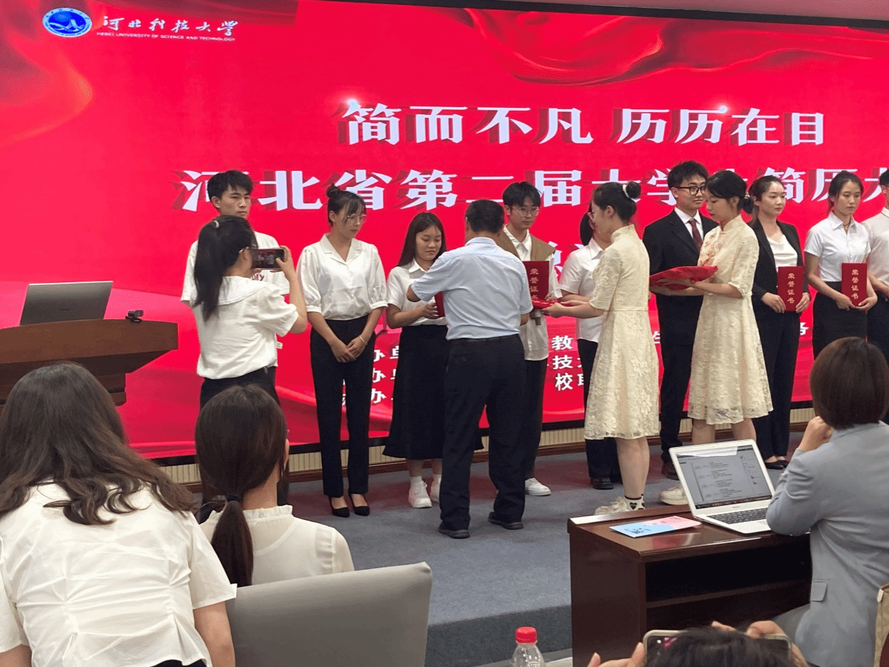 简历是对个人学历,经历,特长,爱好及其他方面有关情况所作的简明扼要的书面介绍。简历是针对性的自我介绍的一种规范化,逻辑化的书面表达。对于应聘者来说,简历是求职的一块“敲门砖”。6月3日,河北省第二届大学生简历设计大赛决赛于河北科技大学顺利开赛!进入决赛的20名学生上演了精彩纷呈的风采展示。决赛期间,选手们紧紧围绕自己的简历进行了详细而充分的自我介绍,为在场观众讲述了各自的求职简历的亮点。并在问答环节紧扣细节、...