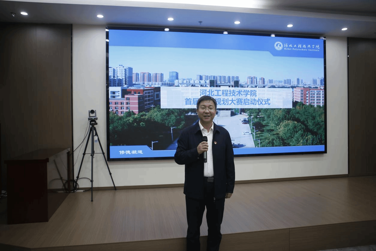 校长助理刘喜贵作开场致辞,他针对目前的就业形势对我校就业工作进行系统谋划、整体布局、精准施策,通过职业规划大赛将“三全育人”工作落到实处,通过举办大赛,更好实现“以赛促学、以赛促教、以赛促就”,引导我校大学生树立正确的成才观、就业观和择业观,提升就业竞争力,并宣布我校首届全国大学生职业规划大赛正式启动!