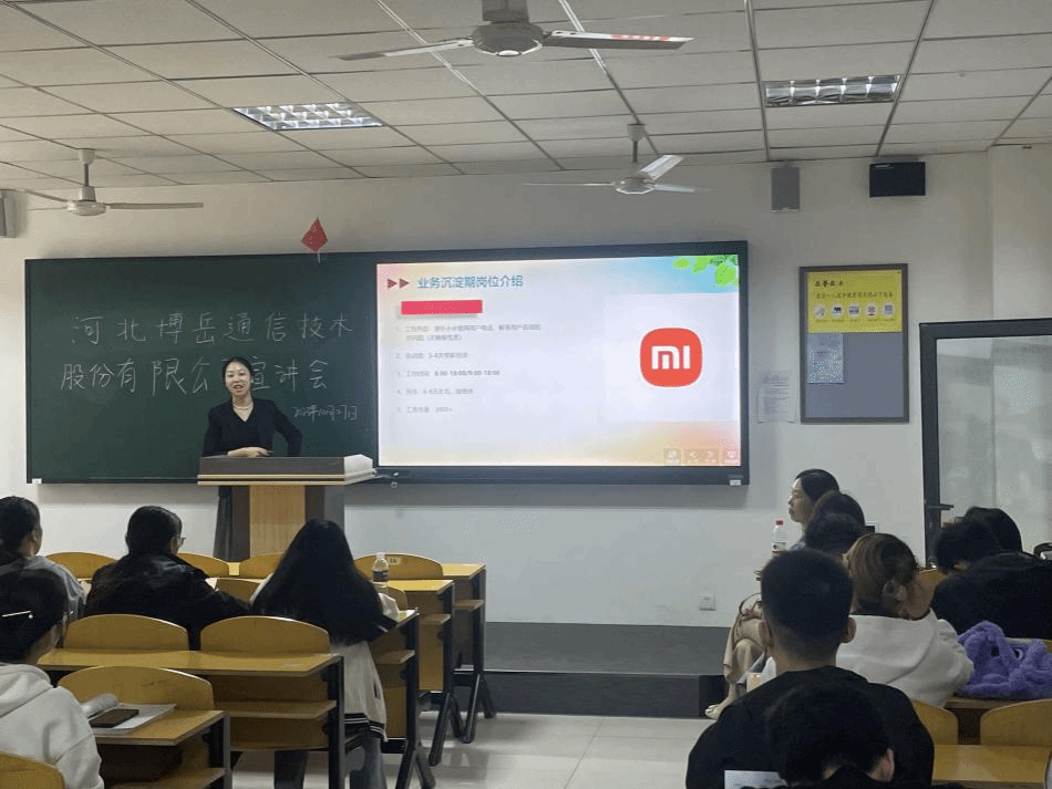 河北博岳通信技术股份有限公司于2023年10月28日在商学院103教室成功举办了毕业生招聘宣讲会。本次宣讲会旨在向商学院2020级市场营销班和2020级金融工程班的同学们介绍公司的招聘需求、企业文化和发展前景,同时为同学们提供一个与公司交流的平台。